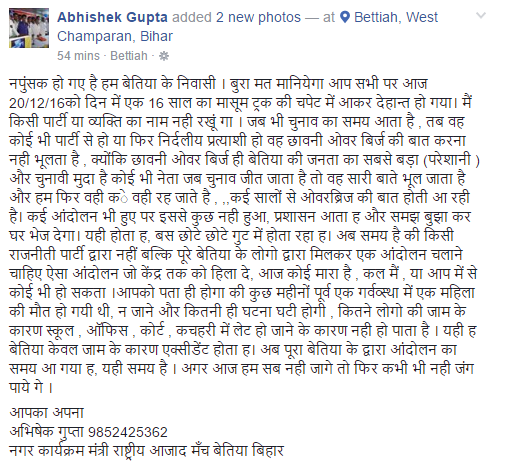 जानिये आज छावनी में हुए मासूम की मौत पर बेतियावासी ने शोसल नेटवर्क पर कैसी दी प्रतिक्रियाएं