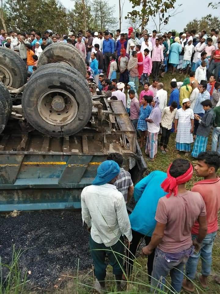 पकड़ी गांव के समीप पत्थर से भरी हाइवा को ओवरटेक करने के क्रम में पिकअप चालक ने नियंत्रण खो दिया।