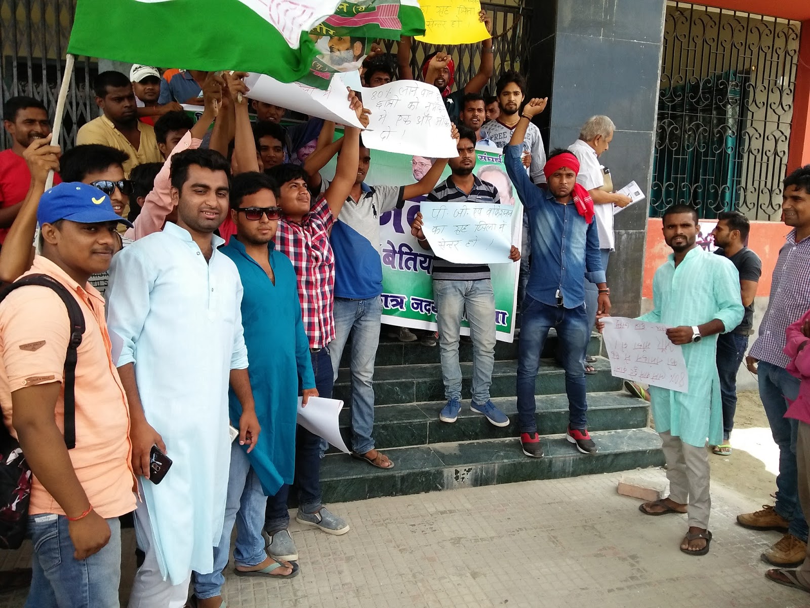 प्रदर्शन का नेतृत्व कर रहे छात्र जदयू के जिलाउपाध्यक्ष शशि कुशवाहा बताया कि पीजी की परीक्षा देने के लिए परीक्षारथी को मुज़फ़्फ़रपुर जाना पड़ता है और वहा छात्रों के साथ धांधली होती है। जिसके वजह से लडकिया और कई लड़के भी पीजी में नामांकन लेने में कतरा रहे है।